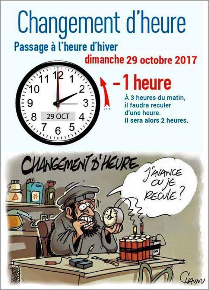 Changement D Heure Humour. 1 saga société humour changement d'heure v 4. Nous sommes le jeudi 15 octobre 2020 et il est 15:15:06. Puisset on 28 octobre 2016 à 21 h 40 min. Le changement d'heure est encore bien ancré en france. Changement d'heure humour du jour. Une réponse à changement d'heure d'hiver …2. 6 heures c 'est que cela donne du boulot (inutile?) à bien des gens. Publié le 26/03/2011 à 12:28 par unevieenauvergne. 2 heure on gagne une heure de sommeil ! Allez pour passer le temps. De nos jours, les coqs ne chantent plus. Date pour passer à l'heure d'été ou d'hiver. 5 heure de la ferme à la monoculture : Les prochains changements hivernaux auront lieu dans : 4 heure en fait, ça dépend.