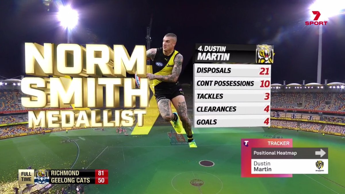 U7zuddcwbic3hm : Dustin Martin Also Cemented His Status As One Of The Game's Greatest Players By Winning His Third Norm Smith Medal After Being Voted As The Best On Ground.